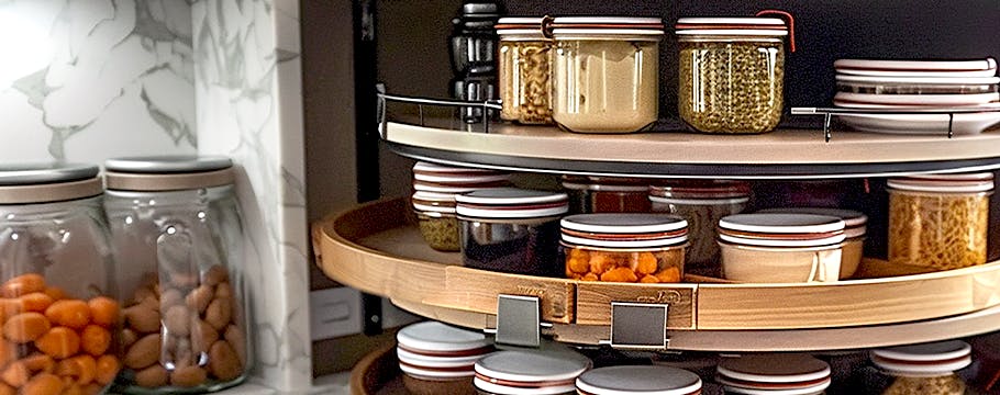 Corners are notorious for being awkward spaces in kitchens, often underutilized or inaccessible. Corner drawers or lazy Susans can turn these tricky areas into useful storage spaces. A lazy Susan allows you to store items like spices or canned goods, making them easy to reach without having to dig into the back of the cabinet.
